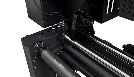 An air shaft take up system maintains controlled tension, prevents material slack and wrinkles. It is essential for consistent media feeding and facilitates the winding of material onto the take-up roll and minimizing material waste.